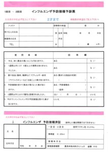 インフル問診票2歳まで